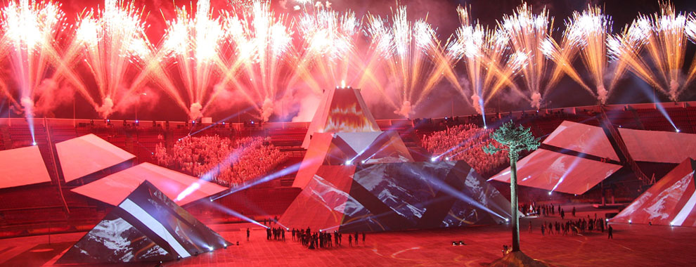 Fuegos artificiales y desfiles de delegaciones durante la ceremonia / Fireworks and delegations parade during the opening ceremony |