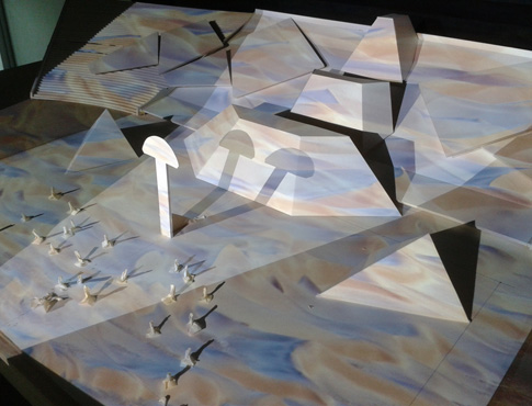 Maqueta a escala Estadio Nacional para prueba de proyecciones / National Stadium scale model for video testing |