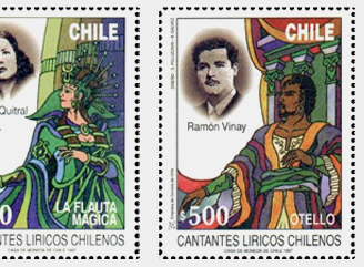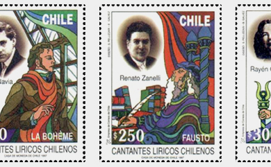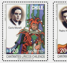 Diseño de serie conmemorativa "Cantantes de Opera Chilenos del Pasado" - 1997 5 sellos postales para Correos de Chile con emisión limitada de 50000 unidades de cada uno Los artistas son Carlo Morelli, Pedro Navia, Renato Zanelli, Rayen Quitral y Ramón Vinay |